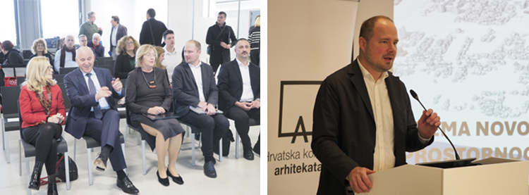 U prvom bloku Nikša Božić (Odbor za urbanizam HKA) predstavio je polazišta usmjerena na ostvarivanje kvalitete prostora, participaciju javnosti u postupcima izrade prostorno-planskih dokumenata te mjere poticanja arhitektonske uspješnosti kroz afirmaciju provođenja urbanističko-arhitektonskih natječaja.