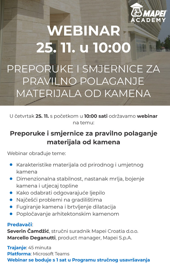Preporuke i smjernice za pravilno polaganje materijala od kamena - MAPEI webinar