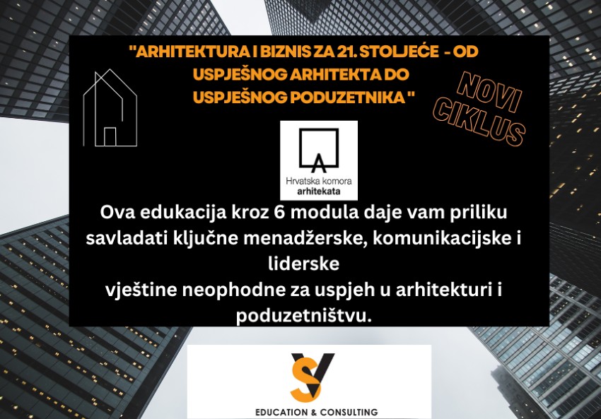 Arhitekti vole kreativnost, uživaju u stvaranju prostora i realizaciji ideja, no često nemaju vremena voditi svoj posao i rijetko tko ih je pripremio za vođenje ljudi, financija i poslovanja. A upravo tu nastaje razlika između “dobre prakse” i održivog, uspješnog biznisa. Ova edukacija pomoći će vam da razvijete ključne menadžerske, komunikacijske i liderske vještine koje su danas neophodne za uspjeh u arhitekturi i poduzetništvu.