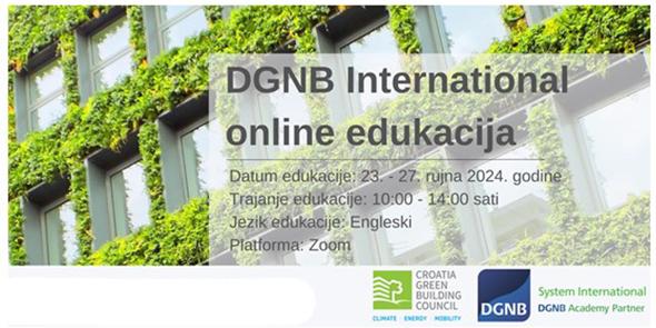 Hrvatski savjet za zelenu gradnju je službeni DGNB System i Academy Partner te je jedini ovlašten na hrvatskom tržištu educirati nove DGNB stručnjake i certificirati prema DGNB-u.